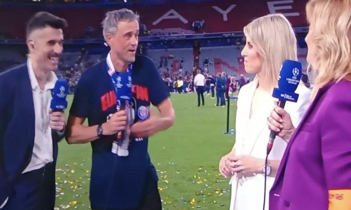 这事儿发生在今年六月份欧冠决赛巴黎圣日耳曼跟国际米兰比赛的时候。当时恩里克带着巴黎队拿了冠军。在庆祝的时候,他跑到Movistar+的演播区,准备接受主持人莫妮卡-马尔尚特、阿尔瓦罗-贝尼托还有苏萨娜-瓜什的采访。可他开口第一句话,就让现场气氛变得有点微妙了。他说:“我来这儿啊,就是为了莫妮卡,大家都懂。给阿尔瓦罗来那么一点儿。至于你嘛,很少很少。”说着还指了指瓜什。这看似随便开的玩笑,好多人觉得都带着讽刺的意思。视频在社交媒体上一下子就传开了,大家都在议论,也把两人之间早就有的一些不愉快又给点着了。