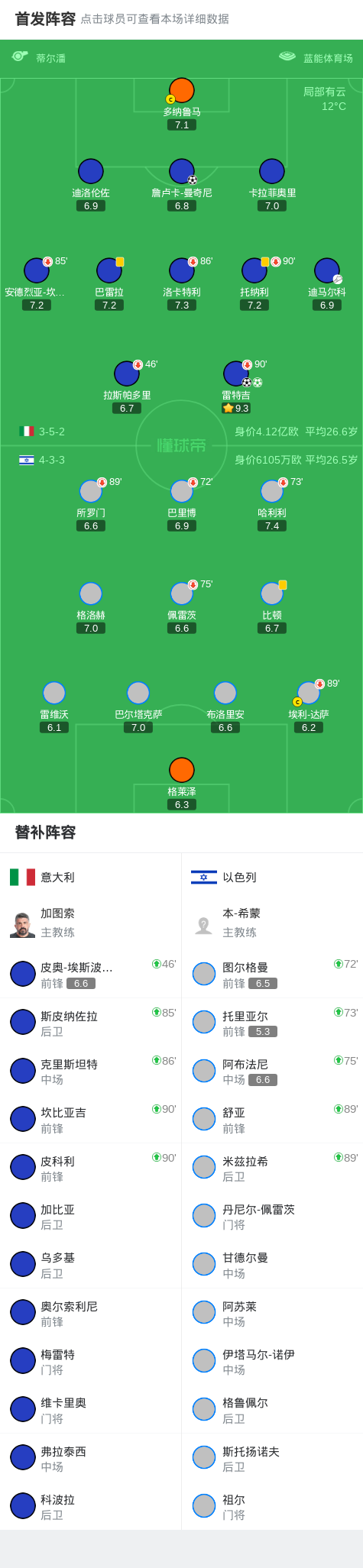意大利3-0以色列,雷特吉梅开二度,詹卢卡-曼奇尼头球建功